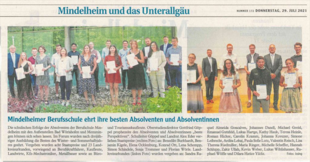 In feierlichem Rahmen wurden die besten Abschlussschüler des Jahrgangs 2020/2021 im Forum in Mindelheim geehrt. Herzlichen Glückwunsch für die besonderen schulischen und sozialen Leistungen.