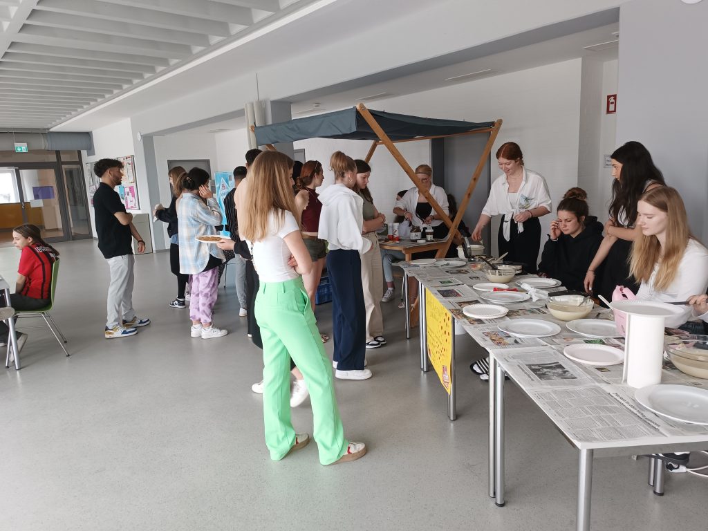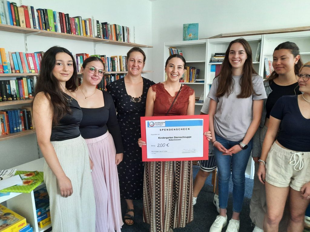 Die gesamte Schulgemeinschaft hat sich engagiert, um Spenden für den durch das Hochwasser schwer getroffenen Kindergarten Babenhausen zu sammeln. Durch Aktionen wie Waffelverkauf, Wundertüten und den Flohmarkt der SMV konnte ein schöner Erlös generiert werden. Frau Walter nahm die Spende mit großer Freude und Dankbarkeit entgegen.