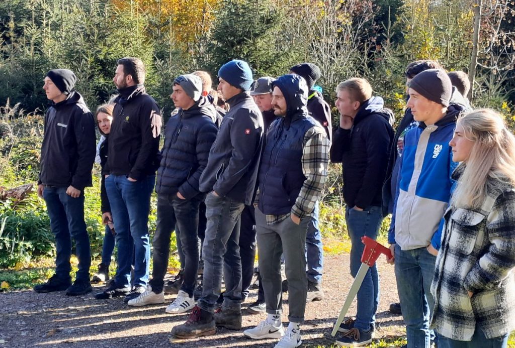 Ein praktischer Teil der landwirtschaftlichen Ausbildung in der 12. Klasse im Fach „Waldbau“ ist eine Stationsübung. Die Unterweisung erfolgt durch die Forstbehörde.