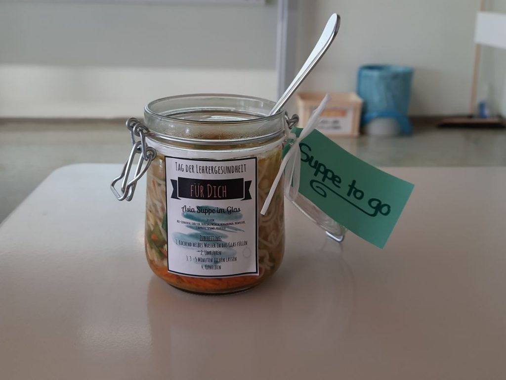 Suppe to go – schon das Aufgießen der Suppe verströmt appetitanregende Gerüche, so dass jedes Glas einen Abnehmer fand – einfach lecker.
