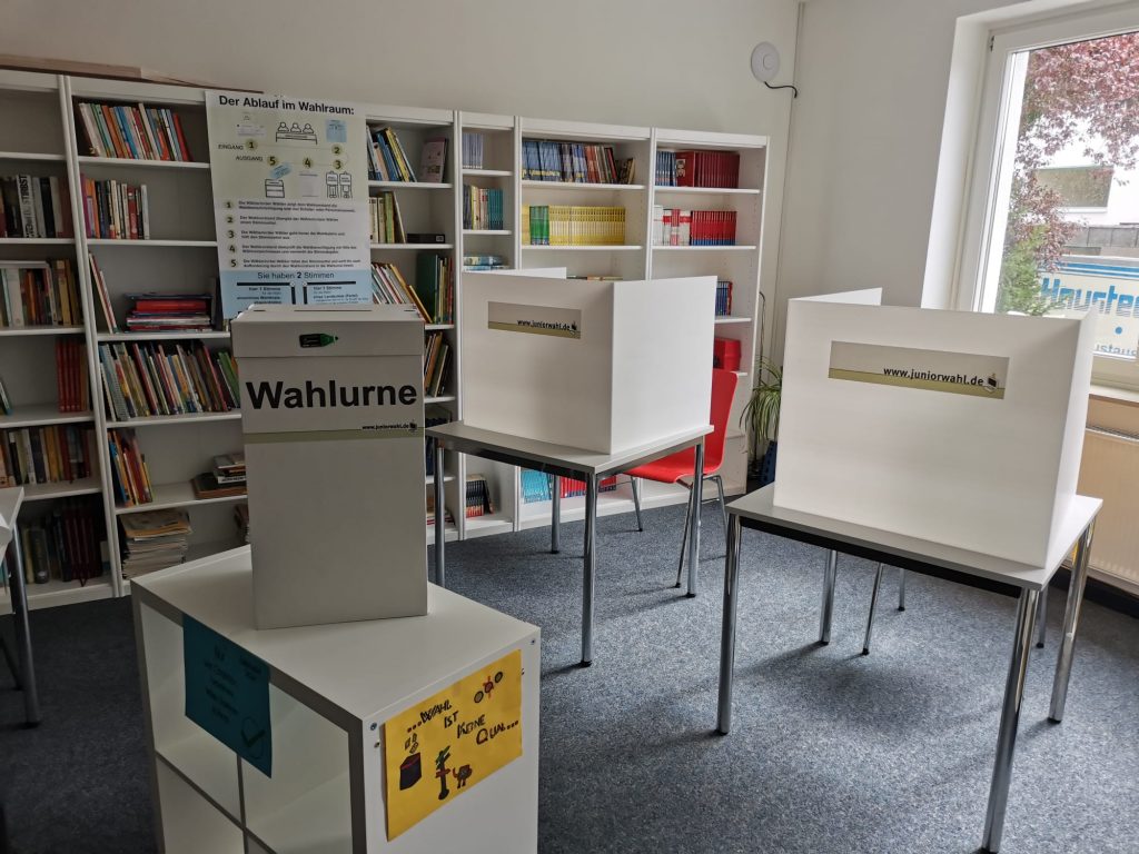 Wer unter 18 Jahre alt ist, darf noch nicht wählen und wer gerade zum ersten Mal wählt, verliert leicht den Überblick: Wahlscheine, Wahlkreise, Zweitstimmen?! Die Juniorwahlen bieten die Möglichkeit, die Demokratie zu erproben. Unsere Schülerinnen und Schüler bereiten sich im Unterricht auf die Wahl vor und setzen am Wahltag in der Schule ihr Kreuz.