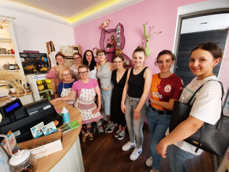 Mit vitaminreichen Cocktails (OHNE Alkohol) und schönen Gesprächen, reflektieren wir die Schultage! Beim Memminger Café „Fräulein Frida“ erkundigen wir uns über „Do-it-yourself-Workshops“ und bekommen kreative