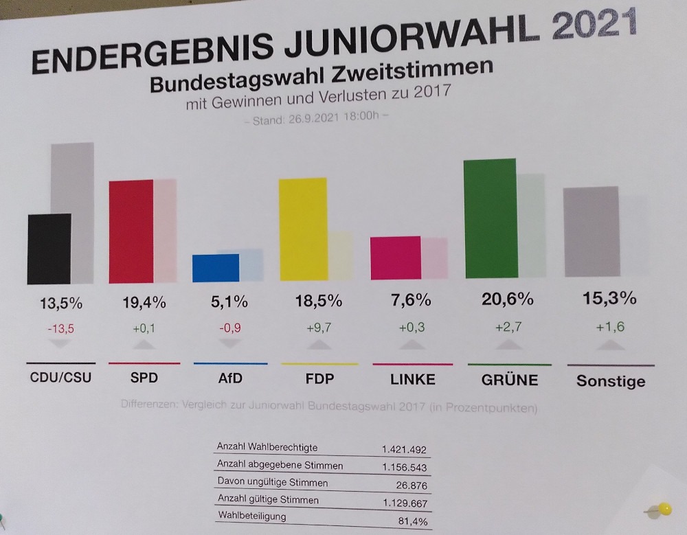Am 26. September war es so weit – Bundestagswahl in Deutschland. Unter 18-Jährige, dürfen noch nicht wählen. Wer zum ersten Mal wählen darf, verliert schnell den Überblick: Wahlscheine, Wahlkreise, Erst- und Zweitstimmen? Die Juniorwahlen bieten die Möglichkeit, Demokratie zu erproben. Unsere Schülerinnen und Schüler bereiten sich im Unterricht auf die Wahl vor und setzen am Wahltag in der Schule ihr Kreuz.