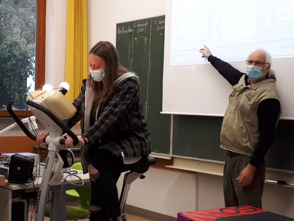 Auf dem Energie-Fahrrad wurde ordentlich in die Pedale getreten, um eine Glühbirne zum Leuchten zu bringen.