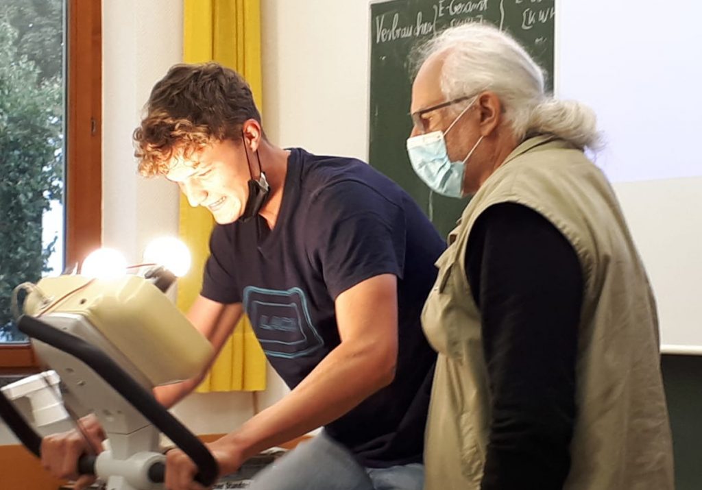 Auf dem Energie-Fahrrad wurde ordentlich in die Pedale getreten, um eine Glühbirne zum Leuchten zu bringen.