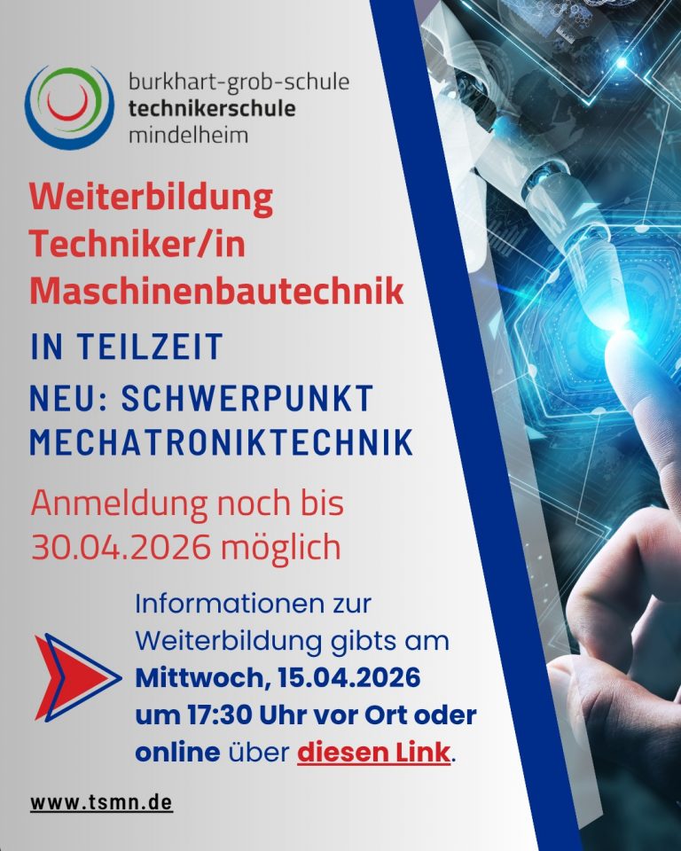 Am Samstag, den 07. Februar 2026 findet von 09:00 – 13:00 Uhr im Gebäude der Technikerschule der diesjährige Info-Tag statt. Sie möchten sich gleich bewerben?