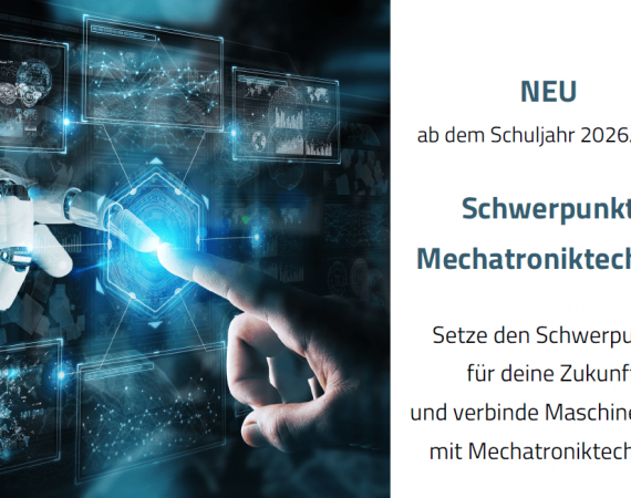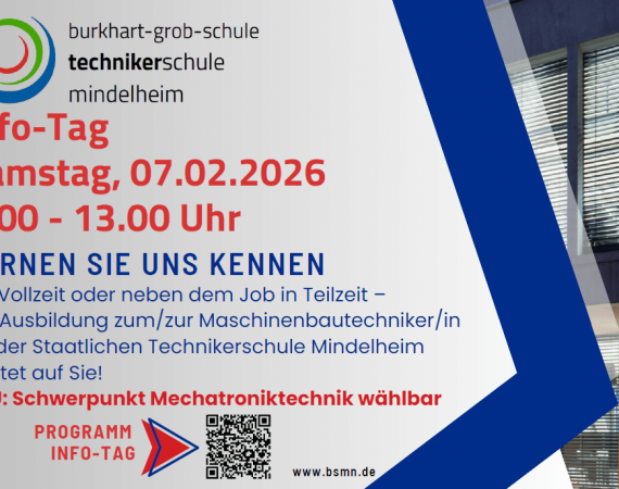 Am Samstag, den 07. Februar 2026 findet von 09:00 - 13:00 Uhr im Gebäude der Technikerschule der diesjährige Info-Tag statt. Sie möchten sich gleich bewerben? Kein Problem!Klicken Sie auf den Pfeil für die Weiterleitung zum Bewerbungsformular! Anmeldung herunterladen, digital ausfüllen und per Post oder Mail zurück zu uns senden!Bewerbungsschluss für...