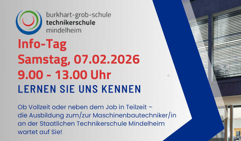 Am Samstag, den 07. Februar 2026 findet von 09:00 – 13:00 Uhr im Gebäude der Technikerschule der diesjährige Info-Tag statt. Sie möchten sich gleich bewerben?